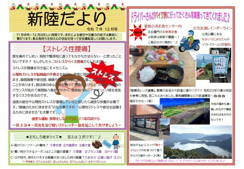弊社では毎月、社内報『新陸だより』を発行し掲示しています。